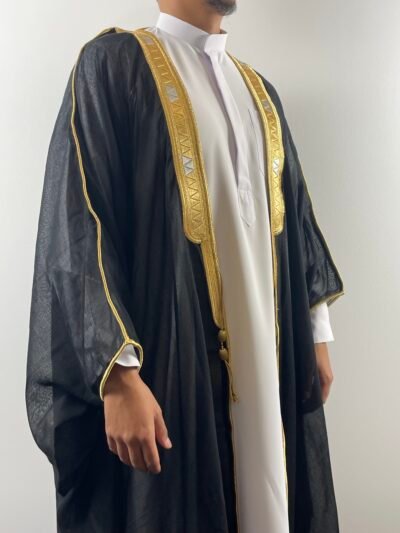 Que ce soit pour une occasion spéciale, une cérémonie ou simplement pour ajouter une touche de classe à votre garde-robe, ce bisht est un choix parfait. Sa coupe ample et fluide offre un confort inégalé, tandis que ses nuances riches et ses finitions soignées en font un véritable symbole de prestige. Commandez dès maintenant et laissez-vous envelopper dans le luxe et l’élégance du bisht traditionnel.