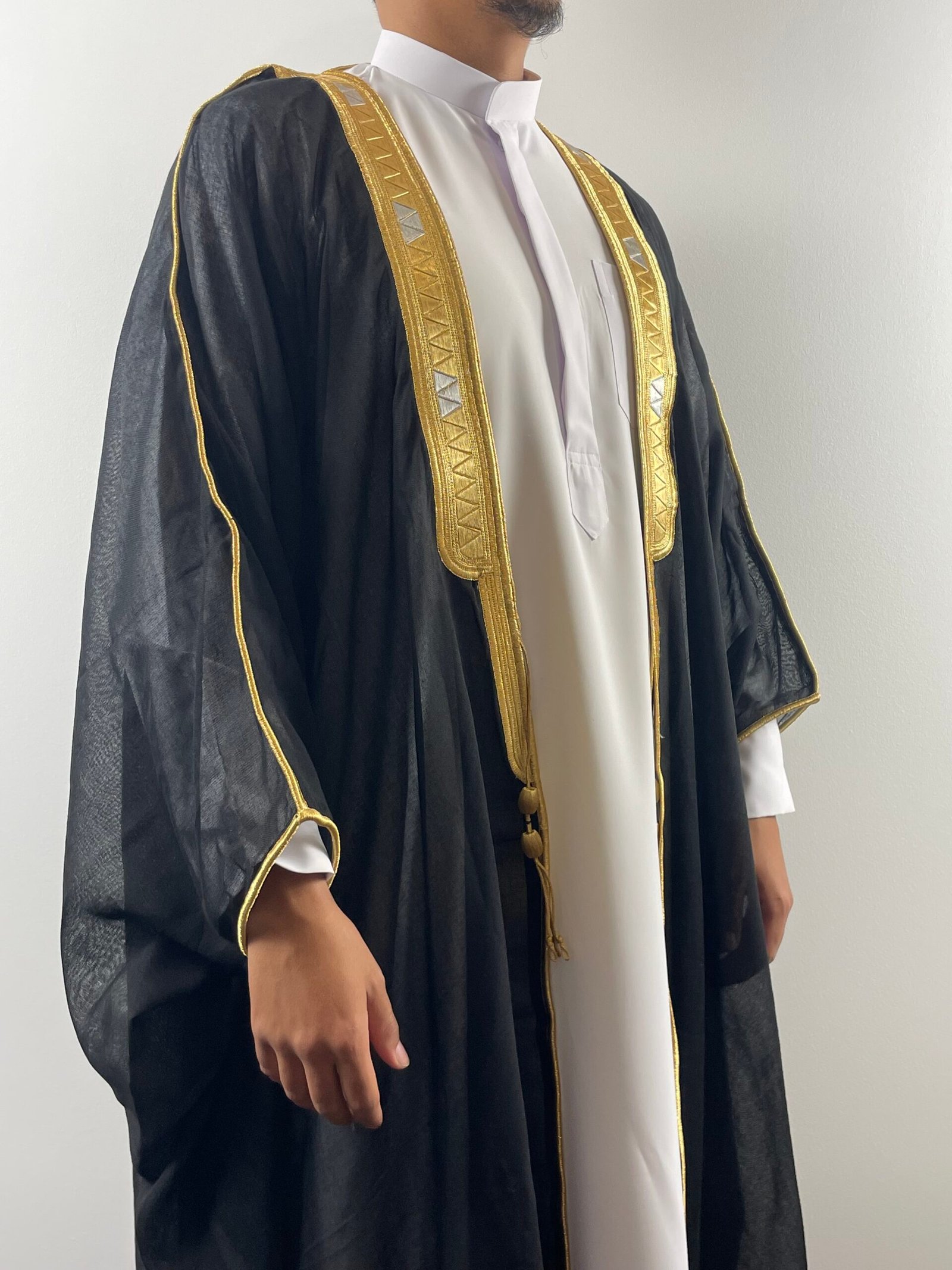 À noter que les Bisht ne sont pas taillés, chaque personne étant différente, il faudra donc passer chez le tailleur pour l’ajuster à votre guise.