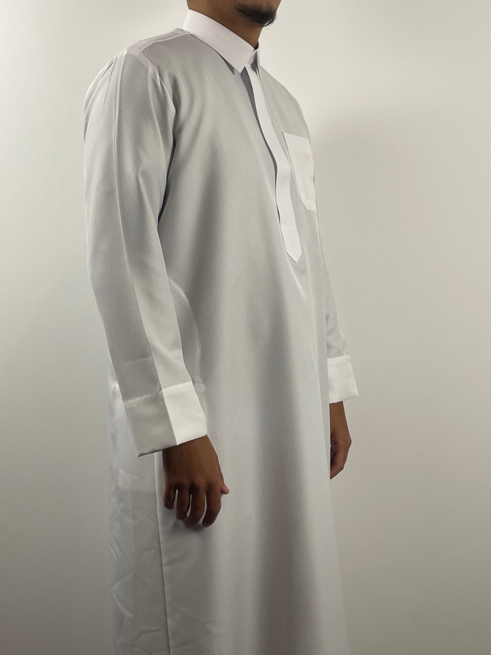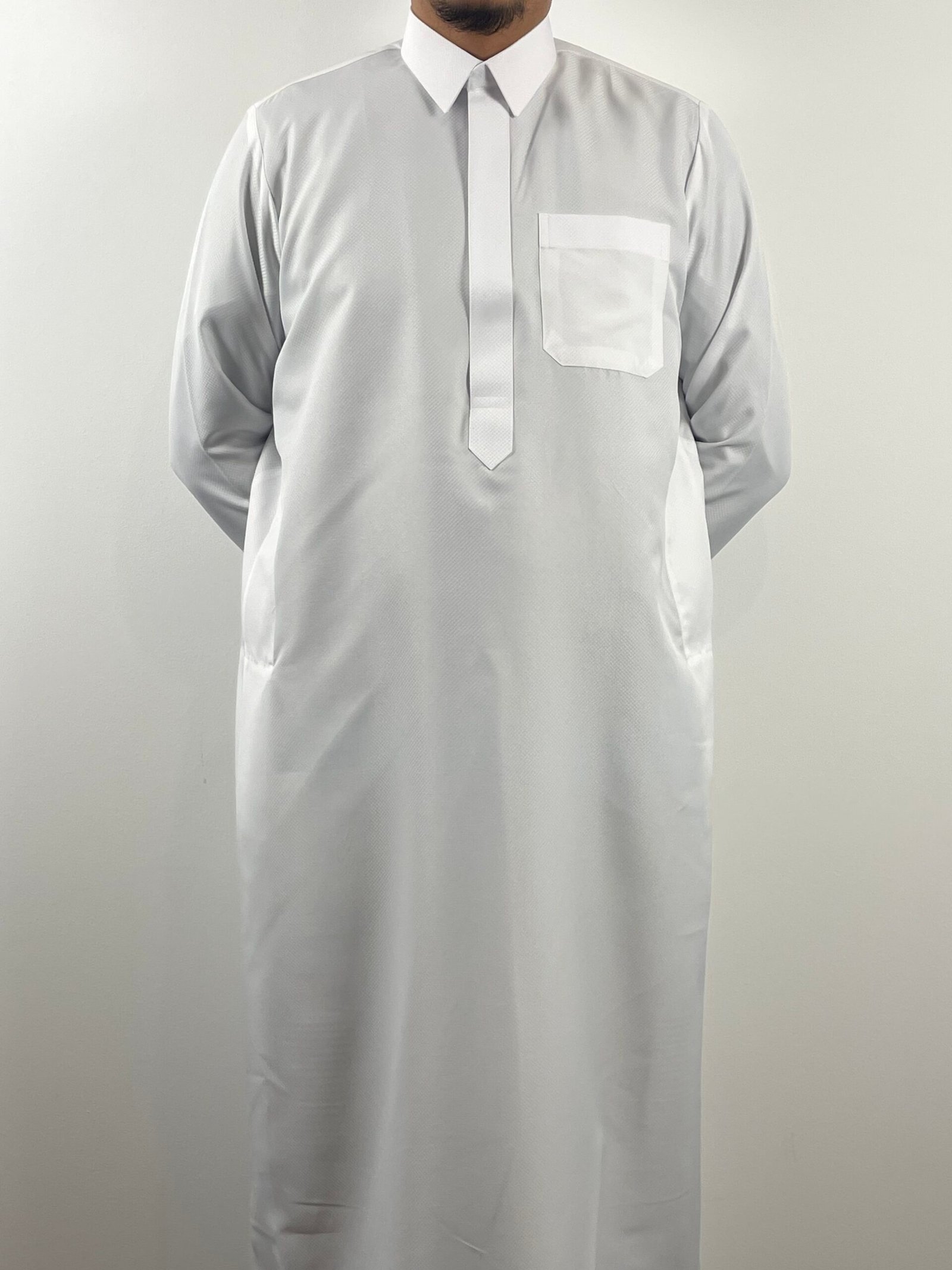 Un qamis haut de gamme au design raffiné, sublimé par de subtils motifs damiers qui apportent caractère et distinction sans compromettre la sobriété. Sa coupe structurée et son tissu premium offrent un tombé impeccable et un confort optimal.